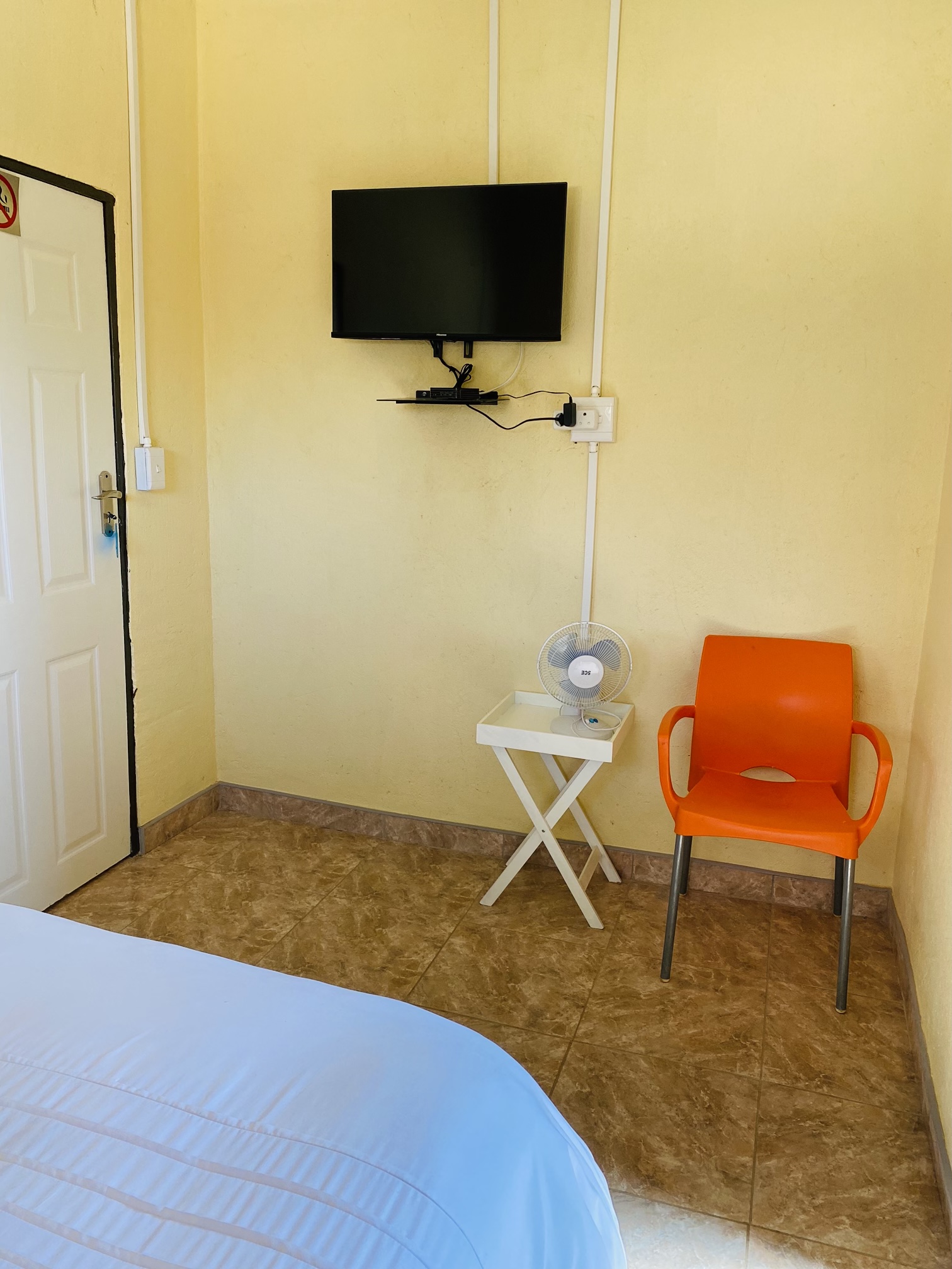 Our rooms come in various sizes, and while prices vary, we ensure that everyone can enjoy an affordable, high-quality experience. This room includes all the amenities you need, with the added comfort of air conditioning. Enjoy your tea or coffee while watching entertainment on the flat-screen TV, featuring selected channels for your viewing pleasure. Each room is equipped with a fridge, allowing you to keep your drinks and beverages cool and fresh during your stay.